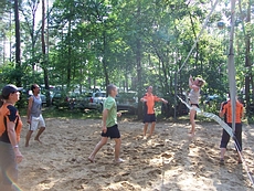 Wieder auf dem Campingplatz, galt es zunächst die müden Knochen auszuruhen. Die einen bei einem kleinen Nickerchen, die anderen bei einer Tasse Kaffee und Leilas mitgebrachten Kuchen. So konnten die Lebensgeister erneut geweckt werden und die Bruchpiloten machten sich auf, eine Partie Beachvolleyball zu spielen. Gesagt, getan und zur Abkühlung anschließend hinein in den Untersee, der bereits angenehme 21° C Wassertemperatur aufwies.