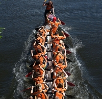 Einen Tag nach dem Drachenbootfest in Oranienburg überlege ich, was ich im Bericht schreiben soll. Wir nehmen ja schon viele Jahre an diesem Event teil und vieles ist über die Jahre gleich geblieben. Frühes Aufstehen und Mannschaftsquartier sichern, verspätete Teamleiterbesprechung, Warmmachen für die Rennen, fachkundige Diskussion über die beste Zusammensetzung und Renntaktik, reibungslose Durchführung der Rennen (immerhin mit Teilnehmerrekord), langes Warten auf die Siegerehrung. Das hatten wir auch in diesem Jahr und doch: es war ein besonderer Tag.