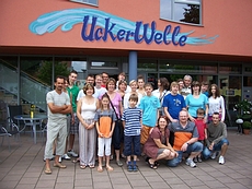 Erstmals ohne Feiertagsverlängerung begaben sich 26 große und kleine Bruchpiloten auf die alljährliche Wochenendtour vom 03.07. - 05.07.2009. Sie führte uns in diesem Jahr in den Nordostzipfel Brandenburgs, nach Prenzlau. Von Sabine und Ulf schon seit langem gesucht, begutachtet und gebucht, erreichten die Bruchpiloten am Freitag das Jugendgästehaus Uckerwelle in Prenzlau. Bei schwülwarmen Wetter suchten einige aber gleich wieder das Weite bzw. das kühle Nass im nahegelegenen Uckersee. Die übrige Mannschaft bezog in Ruhe die Zimmer und bereitete sich auf das Abendessen vor. Nach einem (in zeitlicher Sicht) ausgiebigen Abendessen trafen sich die Bruchpilotendann im Garten und ließen Sabine, unser Geburtstagskind, hochleben.