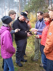 Viele Aktivitäten haben die Bruchpiloten schon gemeinsam unternommen. Kanu-, Wander- und Fahrradtouren führten uns in die nähere und fernere Umgebung von Leegebruch. Am 29.10.2011 nun hatte eine kleine Gruppe der Bruchpiloten die Gelegenheit, eine völlig neue Art der Freizeitgestaltung in Mutter Natur kennenlernen zu dürfen. Geocaching. Eine Form der Schatzsuche bzw. Schnitzeljagd, bei der ausgehend von den Startkoordinaten neue Verstecke und Hinweise gefunden werden müssen. Neben einem unverzichtbaren GPS-Gerät sind vor allem ein heller Verstand und wache Augen gefragt. Wie sich zeigen sollte, waren darüber hinaus auch einige „Werkzeuge“ notwendig. Schraubenzieher, Taschenlampe sowie Stift und Zettel waren nützliche Untensilien, ohne die wir die einzelnen Stationen nicht hätten bewältigen können.