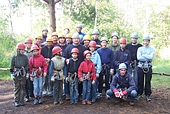 Ob Groß oder Klein, alle Bruchpiloten waren eifrig dabei, die Parcoure zu durchklettern. Dabei wurde gelobt und angefeuert, sollte ein Hindernis auf mehr Schwierigkeiten stoßen als erwartet. Insbesondere unseren Jüngsten ist hier ein großen Lob auszusprechen, die mutig und mit viel Geschick den Erwachsenen zuweilen Beispiel geben konnten. Krönender Abschluss jedes Parcours war stets die rasante Seilbahnabfahrt, deren Geschwindigkeit man selbst bestimmen konnte, je nachdem, ob man mit der Hand brenmste oder nicht. Lediglich zum Schluss war ein Abbremsen notwendig, damit nicht ein Baum als Rammbock herhalten musste. Sabine Steinert, aufgrund ihres Zehbruchs beim Beachvolleyball noch gehandicapt und auf der Erde geblieben, sorgte für viele bildliche Erinnerungen. Die Kletterzeit neigte sich so rasch dem Ende zu und einige Bruchpiloten konnten so den letzten und schwierigsten Parcours nicht mehr klettern. Ein wenig betrübt, aber auch glücklich, alles gut überstanden zu haben, traf sich die Gruppe zum gemeinsamen Picknick, bevor es gegen 14.30 Uhr wieder zurück Richtung Leegebruch ging. Es war einhellige Meinung der Bruchpiloten, dass der Ausflug allen Spaß gemacht hat und unbedingt einer gelegentlichen Wiederholung bedarf.
