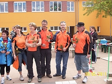 Im Volkslauf über 4,7 km traten Anja, Simone H., Leila, Ingo und Stefan an. Erfolgreichste Läuferin war dabei Anja, die bei den Schülerinnen A den 2 Platz belegte. Herzlichen Glückwunsch. Doch auch Simone und Stefan standen ihr kaum nach und errangen jeweils 3. Plätze in ihren Altersklassen W 40 bzw. M 45. Besondere Anerkennung aber verdient an dieser Stelle Leila, die sich zur Mitgliederversammlung im März spontan zur Teilnahme bereit erklärte, obwohl sie bis dahin eigentlich nie mit Laufschuhen unterwegs war. Das sollte sich in der Folgezeit ändern und vorsichtig aber beharrlich bereitete sie sich auf den Volkslauf vor. Mit dem ehrgeizigen Ziel den Lauf in 28 Minuten zu absolvieren sollte sie tatsächlich eine Punktlandung hinlegen und darf zu Recht stolz auf ihre Leistung sein.