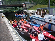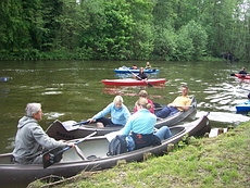 Flussäufwärts ging es auf dem Rhin über die Schleuse Neumühle, den Molchowsee und den Tetzensee bis nach Stedenitz, wo an der Waldschänke die müden Knochen gestreckt und trockene Klamotten angezogen werden konnten. Nach einer Stärkung mit belebenden Getränken ging es an die Rückfahrt. Leider war bei einigen die belebende Wirkung nur von kurzer Dauer und so dauerte die Rücktour vermutlich eine gefühlte Ewigkeit. Den übrigen Paddlern erschien die Rückfahrt flussabwärts und mit dem Wind im Rücken hingegen deutlich schneller. Als wir nach rund fünf Stunden wieder den Ausgangssteg erreichten waren aber doch alle Bruchpiloten reichlich geschafft und es wurde hier und da über die erlittenen Schmerzen geklagt. Auf besonderen Wunsch sei an dieser Stelle noch einmal hervorgehoben, dass Angela sowohl mit ihrer Zweierpartnerin Iris, als auch allein im Einer stets die Richtung gehalten hat. Die im letzten Jahr unbeantwortete Frage, weshalb es damals nicht geklappt hatte, sollte also somit beantwortet sein. Wer jetzt drei ??? im Kopf hat, möge im Vorjahresbericht nachlesen. Das gemeinsame Grillen und ein gemütliches Lagerfeuer rundeten den schönen Tag ab.